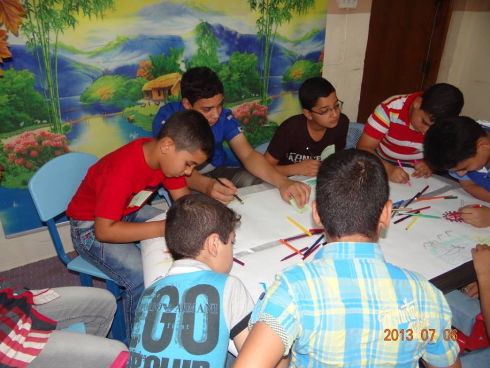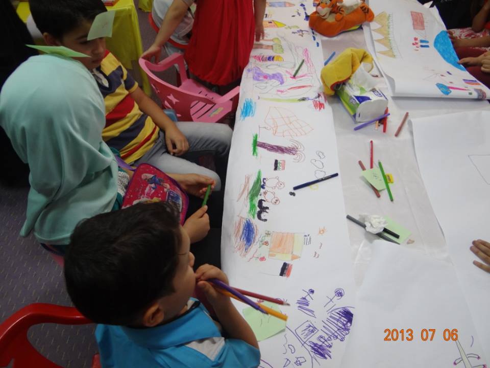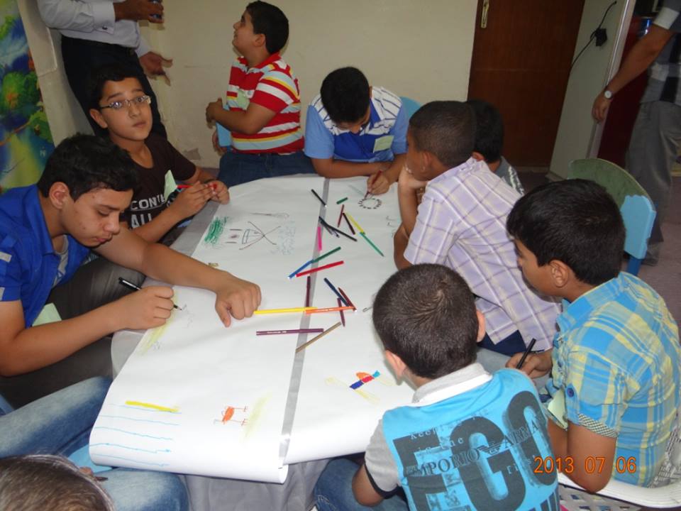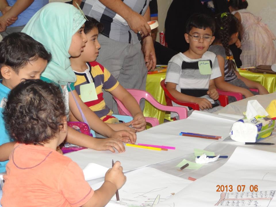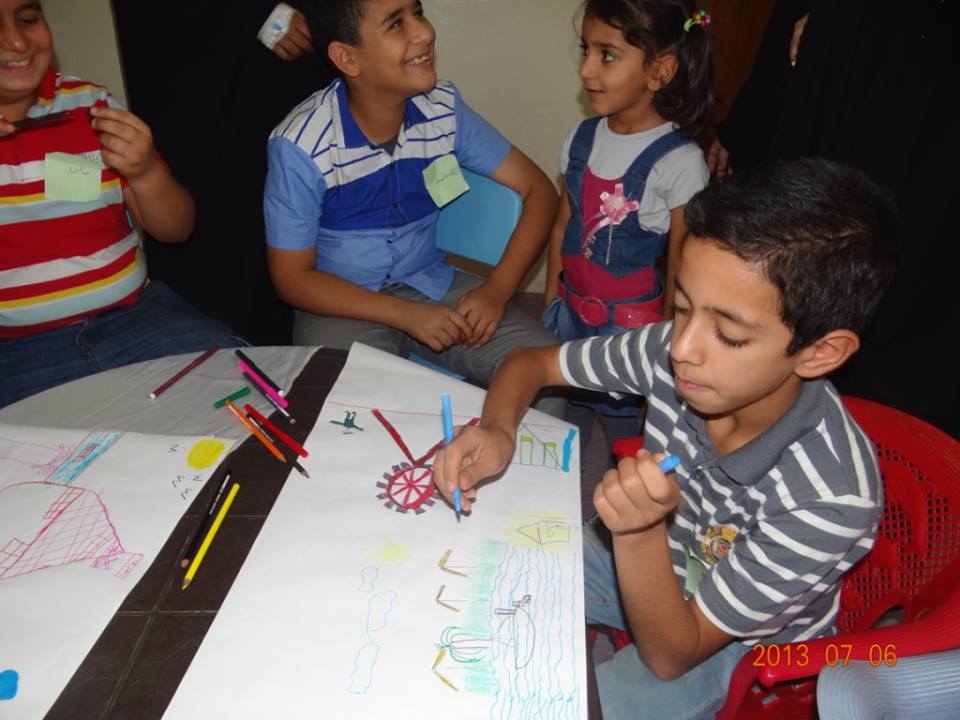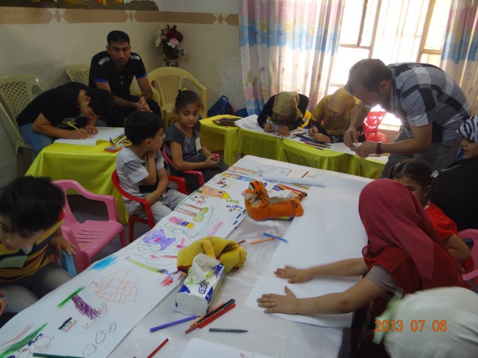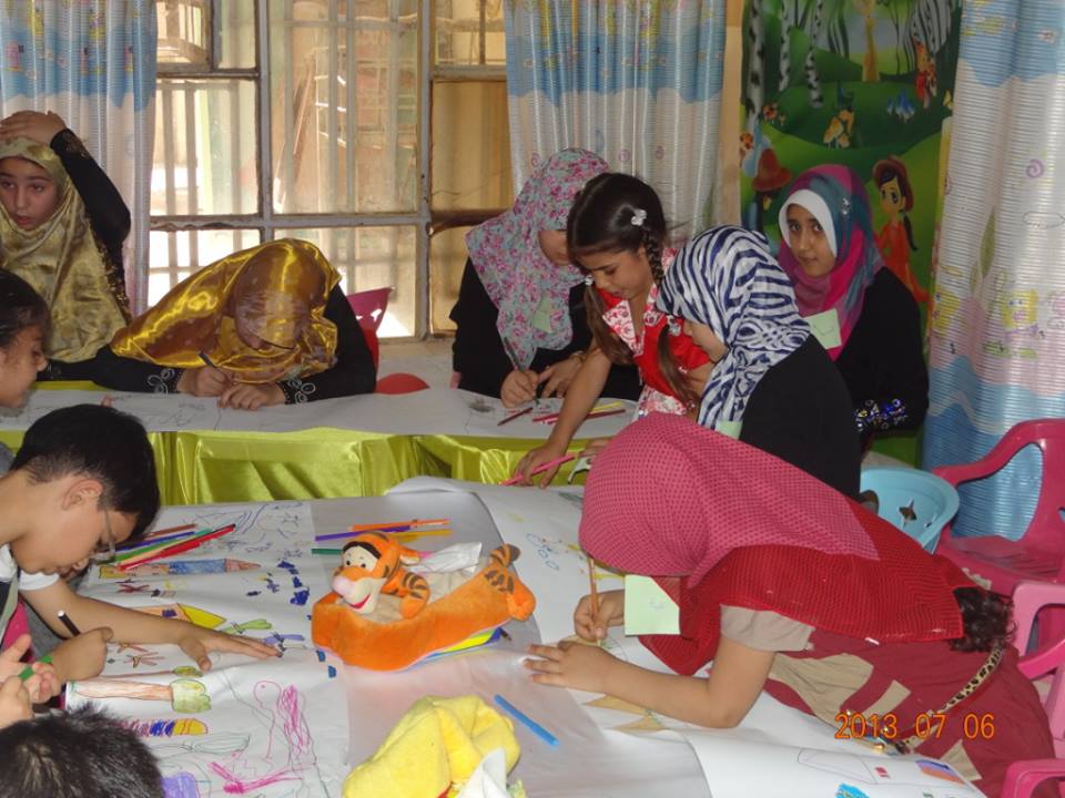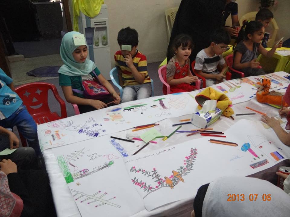 6 July 2013 – creative drawing workshop with children in Najaf (Iraq) conducted by Laith Mutawaq.